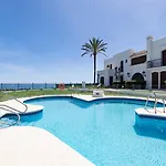 Overlooking the sea, the 2-room Beachfront Townhouse By The Sea @ Villacana Playa! Estepona is approximately a 15-minute walk from El Saladillo Beach. The spacious 110 m² apartment has a terrace, where a swimming pool are available.